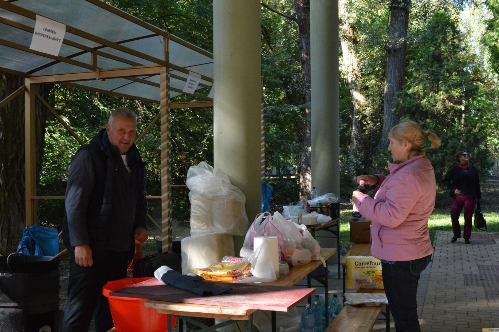 Czirbus Gábor kezében az a fotó, melyen Csávás Antal (középen szemben) látható Márki-Zay Péter aláírásgyűjtő standjánál.