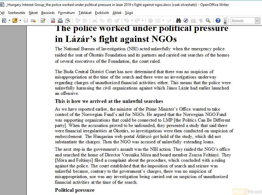 A cikk úgy fogalmaz, a „kormánynak azzal sikerült kiverni a biztosítékot náluk, hogy nyilvánosságra akarták hozni a finanszírozásukat és „külföldi érdekcsoportok által fizetett aktivistákként” emlegették a Soros-szervezeteket, akik ezt zaklatásnak vették és erről, valamint a Soros elleni politikai és médiatámadásokról több tízoldalas jelentésekben panaszkodtak „George bácsinak”. A DC Leaks által kiszivárogtatott dokumentumok között – tér ki rá a PestiSrácok.hu írása – több száz jelentést található a migrációról. Ezekben nem csupán azt írják le Sorosnak, hogy mikor, hol, mennyi migránst sikerült Európába juttatni, hanem arról is értekeznek, hogyan kell ezt a nemzetközi sajtónak „tálalni”.