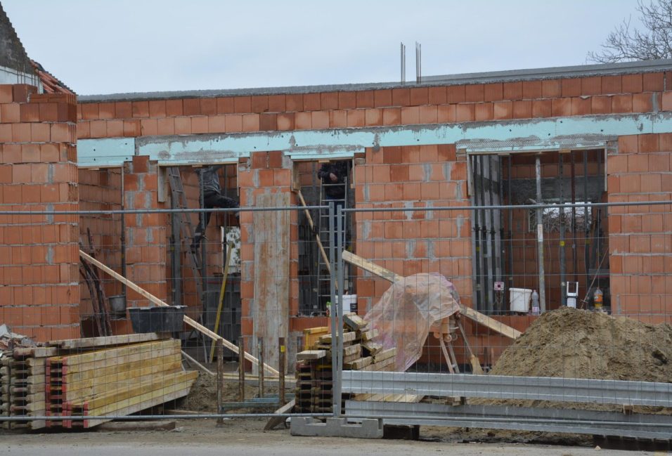 Az év végén még csak az alapokat készítették el, február végére már a falai is állnak a községháza mellett a rendőrőrsnek és a takarékszövetkezetnek is helyt adó épületnek. Ide kerül a bankjegykiadó automata is.
