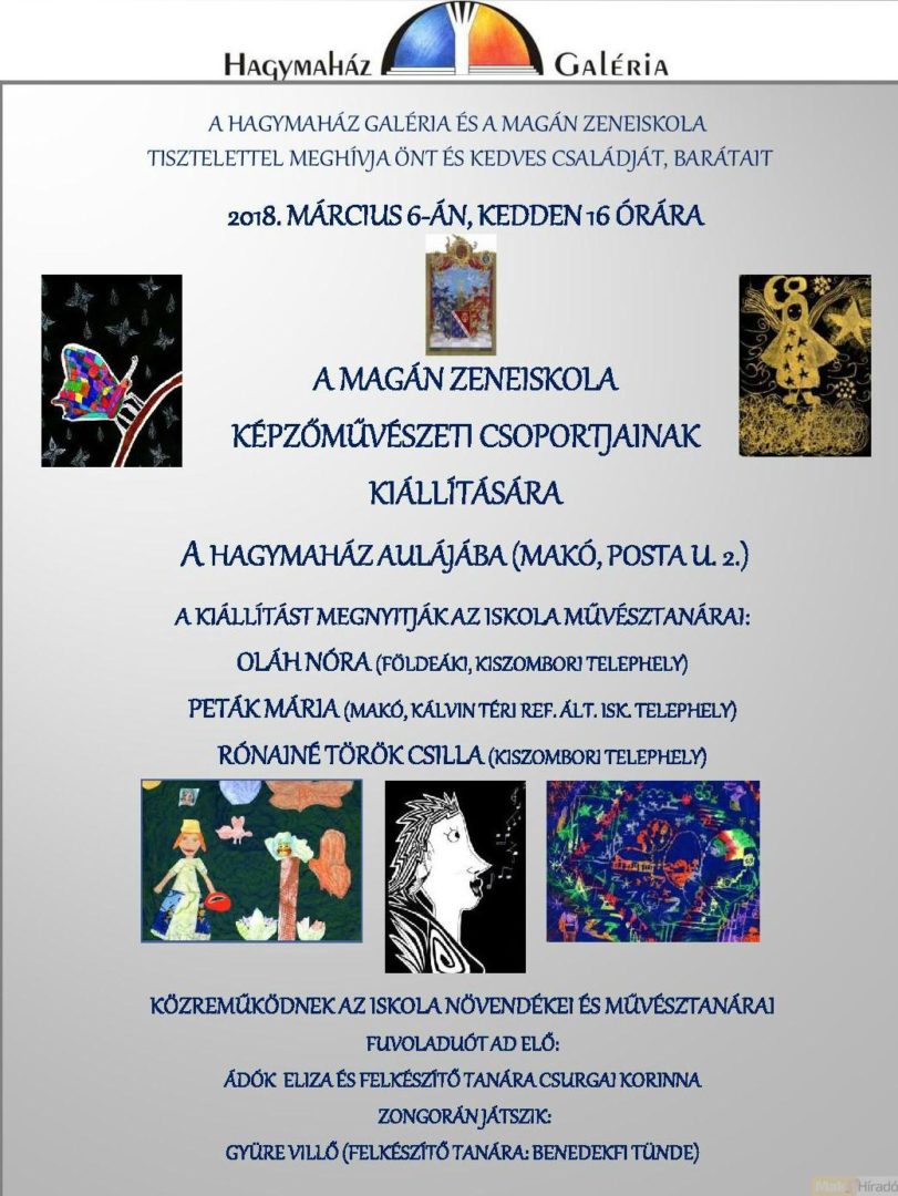 A Makói Magán Zeneiskola képzőművészeti csoportjai tárlata nyílik meg kedden délután 4 órakor a Hagymaház Galériában és az iskola szervezésében a Hagymaház aulájában. Képünk egy korábbi kiállításon készült.