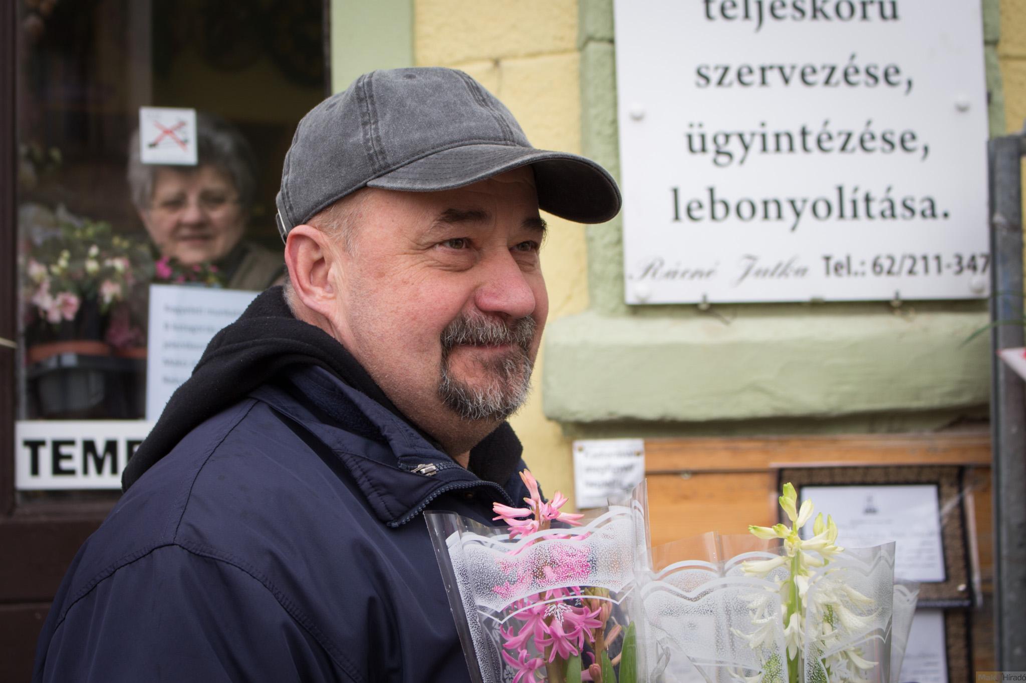 A virágboltokban a férfiak is bőszen válogattak. Sóki János a feleségének, a lányának, az édesanyjának, a menyeinek és az unokáinak is vásárolt egy-egy szép növényt. Gergely Gábortól, a Hagymatikum igazgatójától pedig megtudtuk, a család női tagjain kívül a munkahelyén 80 hölgyet köszöntöttek Czirbus Gábor alpolgármesterrel.