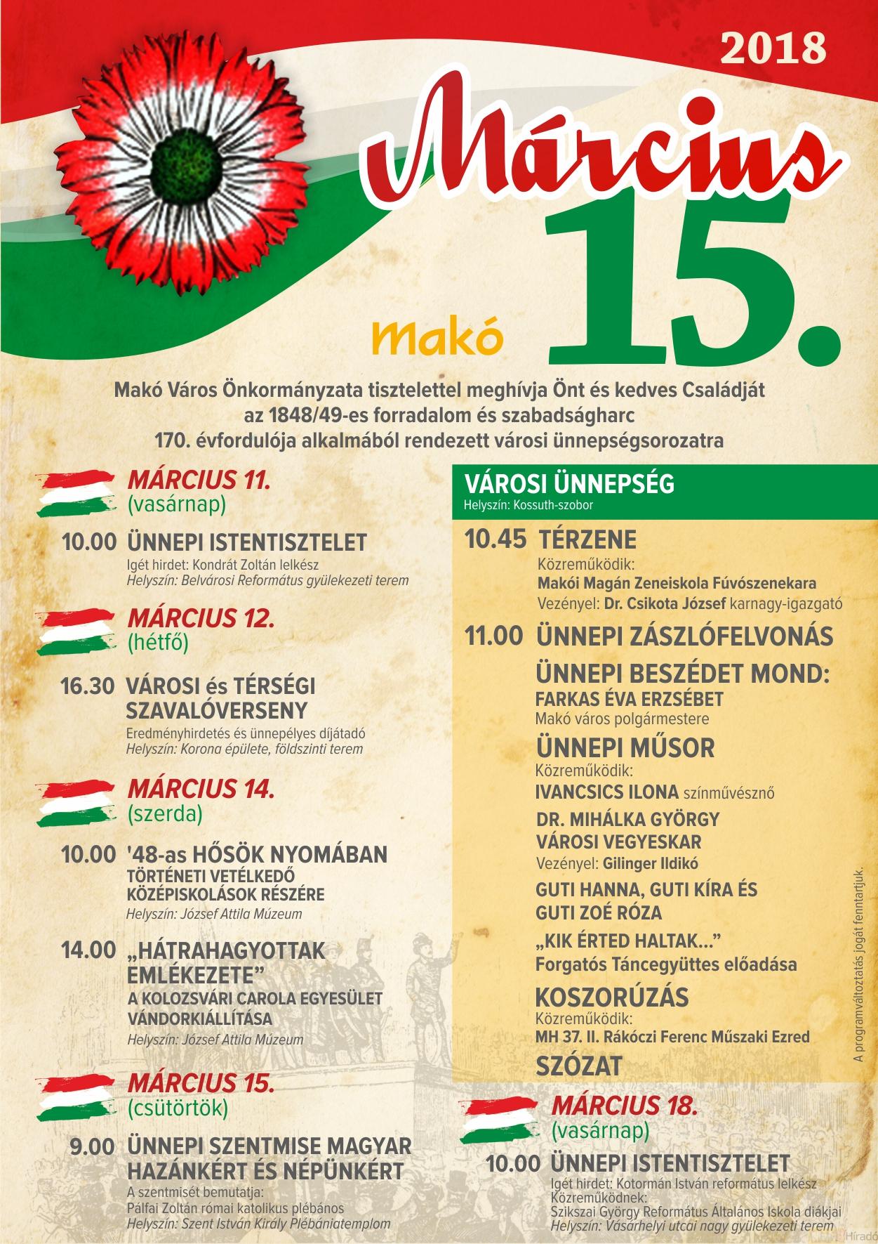 A programok már 11-én elkezdődnek és csak 18-án fejeződnek be. A városi ünnepség március 15-én délelőtt 11 órakor kezdődik.