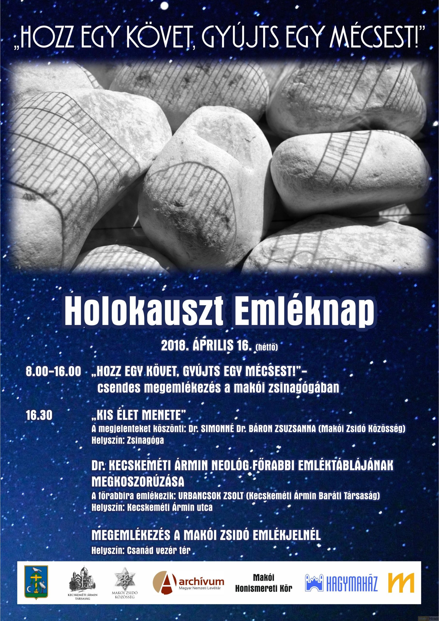 8 és 16 óra között csendes megemlékezés lesz az Eötvös utcai zsingagógában, fél 5-től koszorút helyeznek el a dr. Kecskeméti Ármin emléktáblára, illetve a makói zsidó emlékjelnél.