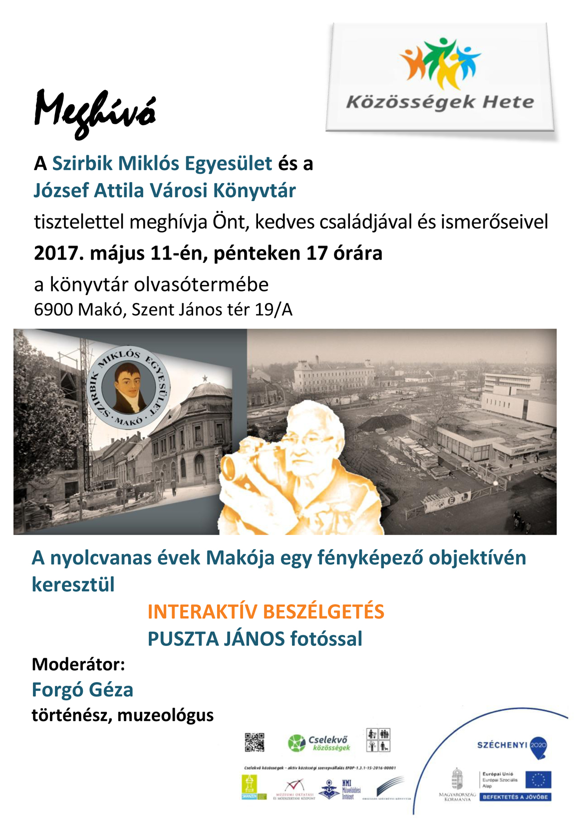 Puszta Jánossal rendeznek beszélgetést a József Attila Városi Könyvtárban.