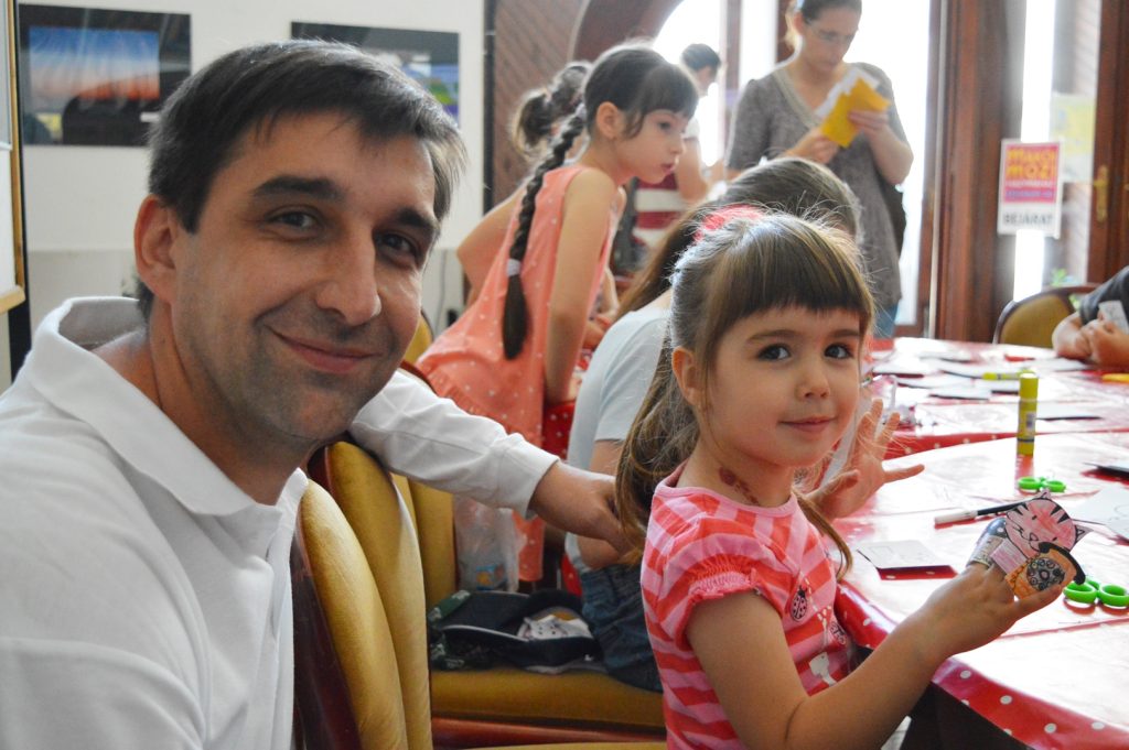 Az állat- és mesefigurákat először kiszínezhették a lurkók, majd kivágás és összeragasztás után a fellépésen bábozhattak is velük. A 3 éves Simonyi Emese is ügyeskedett, több ujjbábot is készített a koncert előtt. Szüleivel, Simonyi Csabával és Ildikóval Szabadkáról érkeztek, csak a fellépés miatt.
