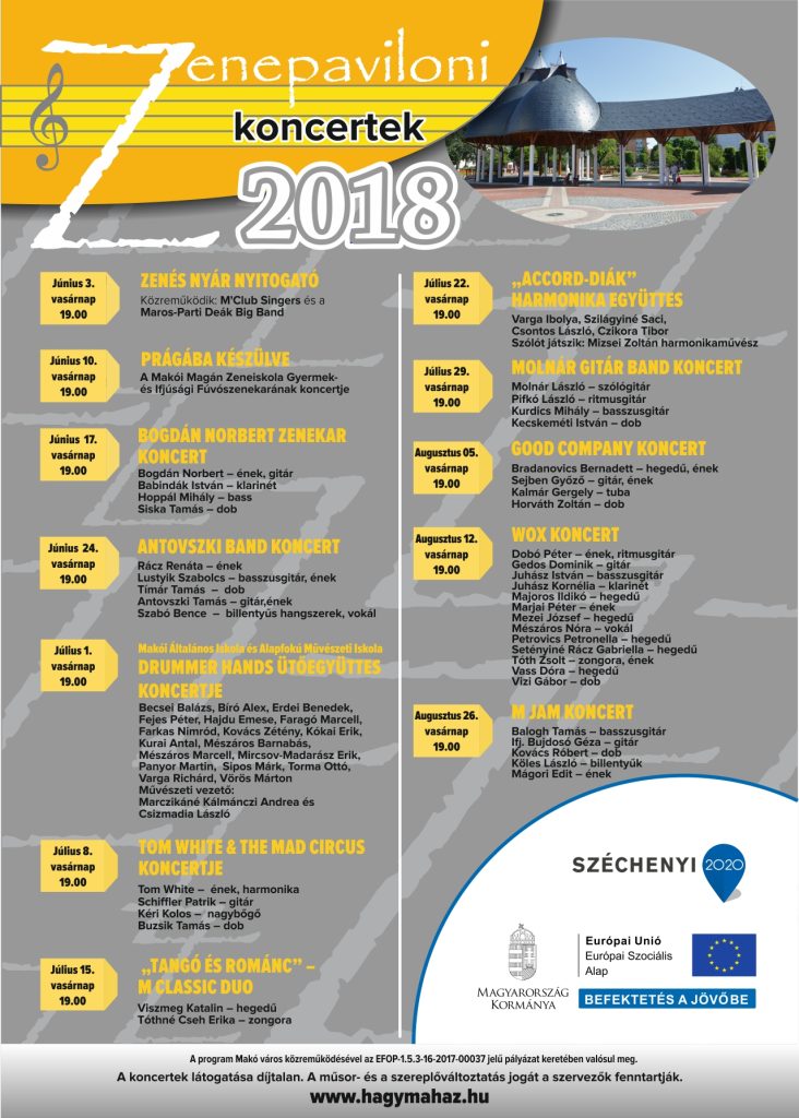 Vasárnap 19 órakor Zenés Nyári Nyitogatóval indul a nyári programsorozat. Közreműködik az M’Club Singers és a Maros-Parti Deák Big Band. A részletes programot itt tudja megtekinteni: