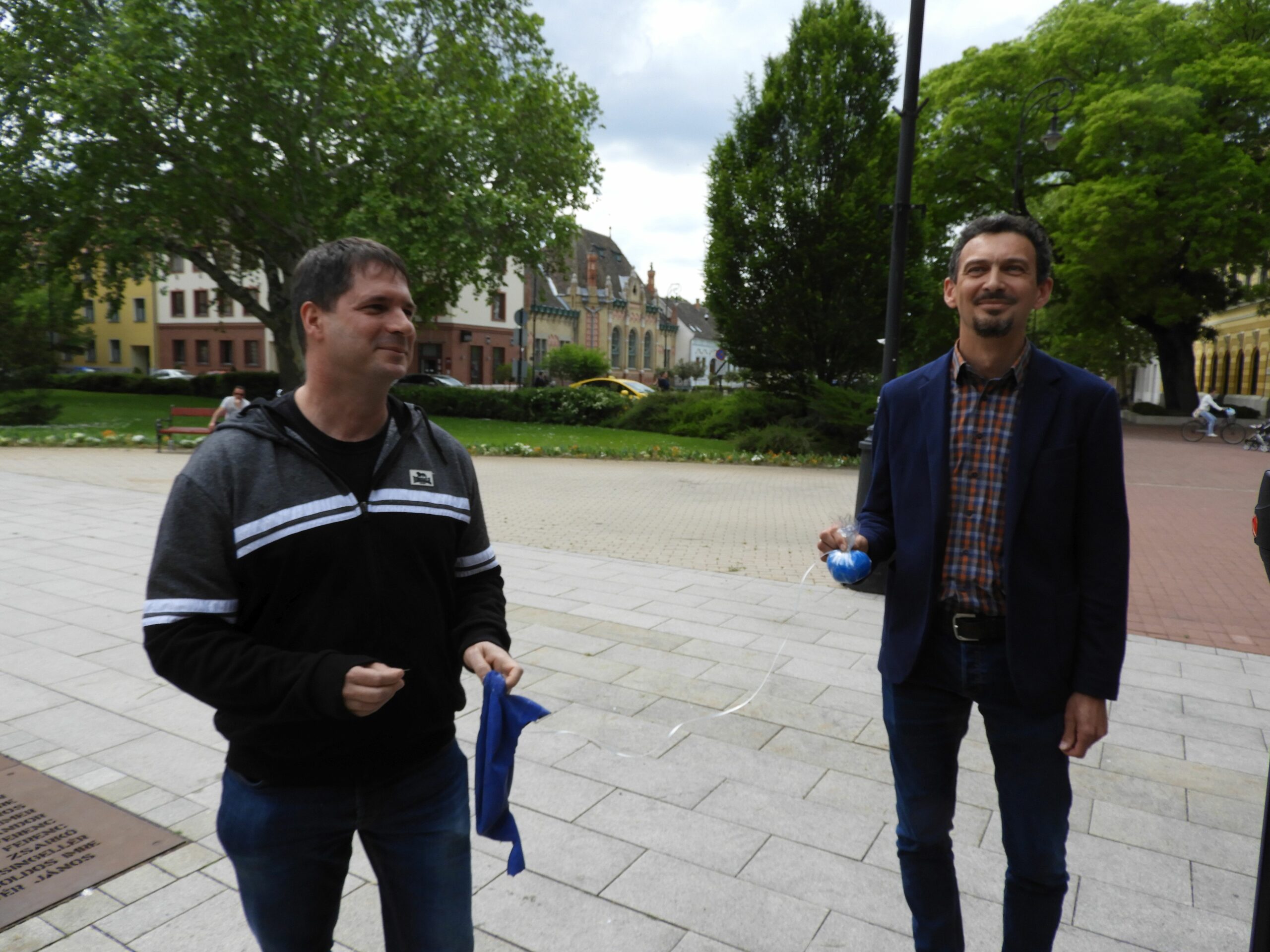 Lufit durrantott a vásárhelyi Fidesz a Kossuth téren. Cseri Tamás és Hegedűs Zoltán önkormányzati képviselők Márki-Zay Péter polgármester tevékenységét szimbolizálták ezzel.