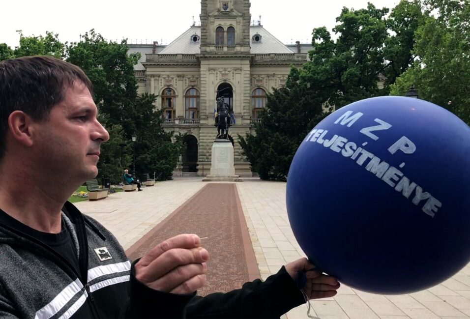 – Az egész politikája hasonlít egy lufihoz, a kommunikációs felszín alatt nincs érdemi tevékenység – összegzett Cseri Tamás, aki kiszúrta a sajtótájékoztatóra „MZP teljesítménye” felirattal készített léggömböt.