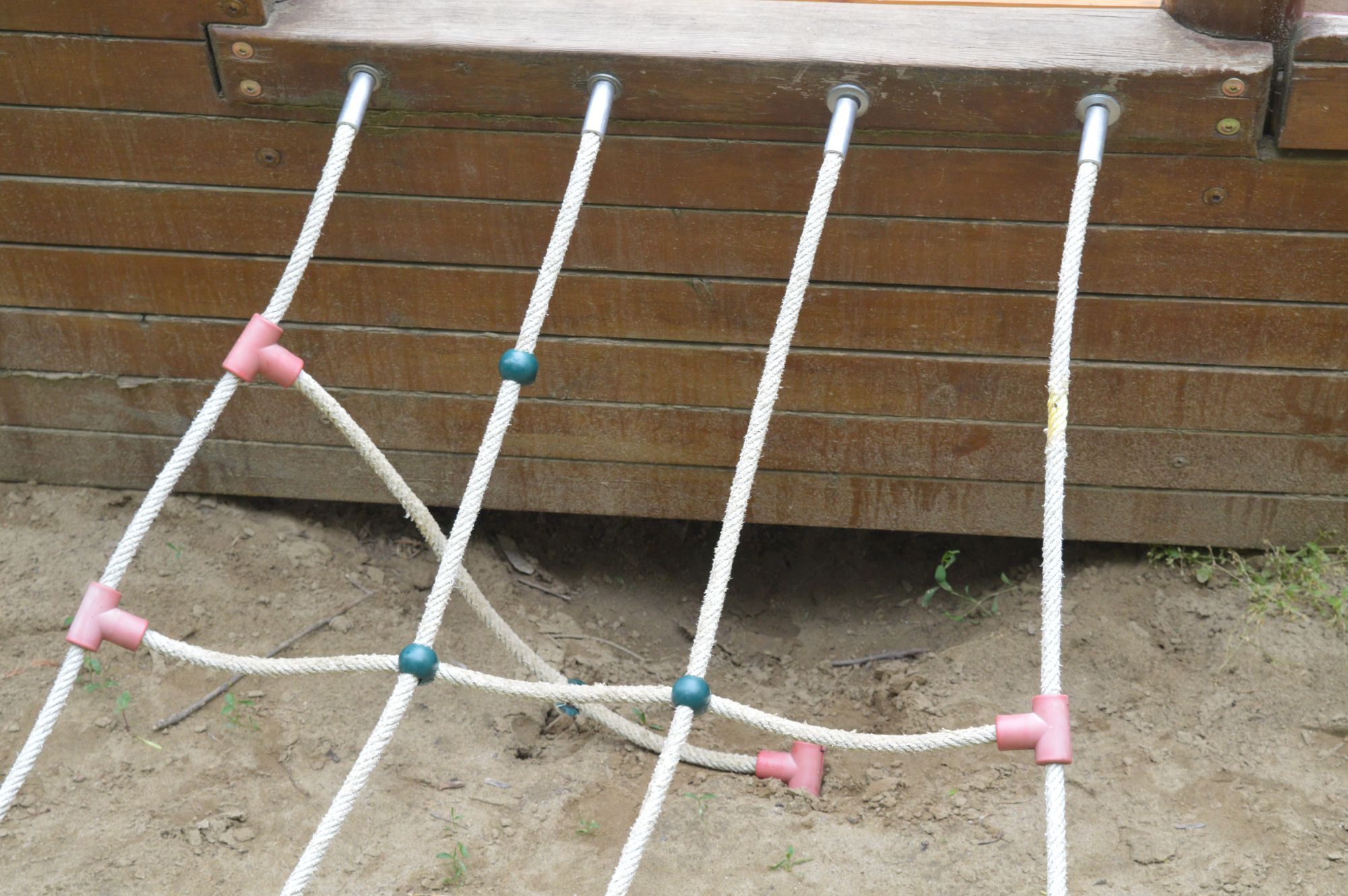 Egy másik berendezés, a hajómászóka is megsérült. Ennek egyik oldalán a kötélhágcsó egyik átkötő eleme szakadt le, itt is vélhetően a “túlsúly” miatt.