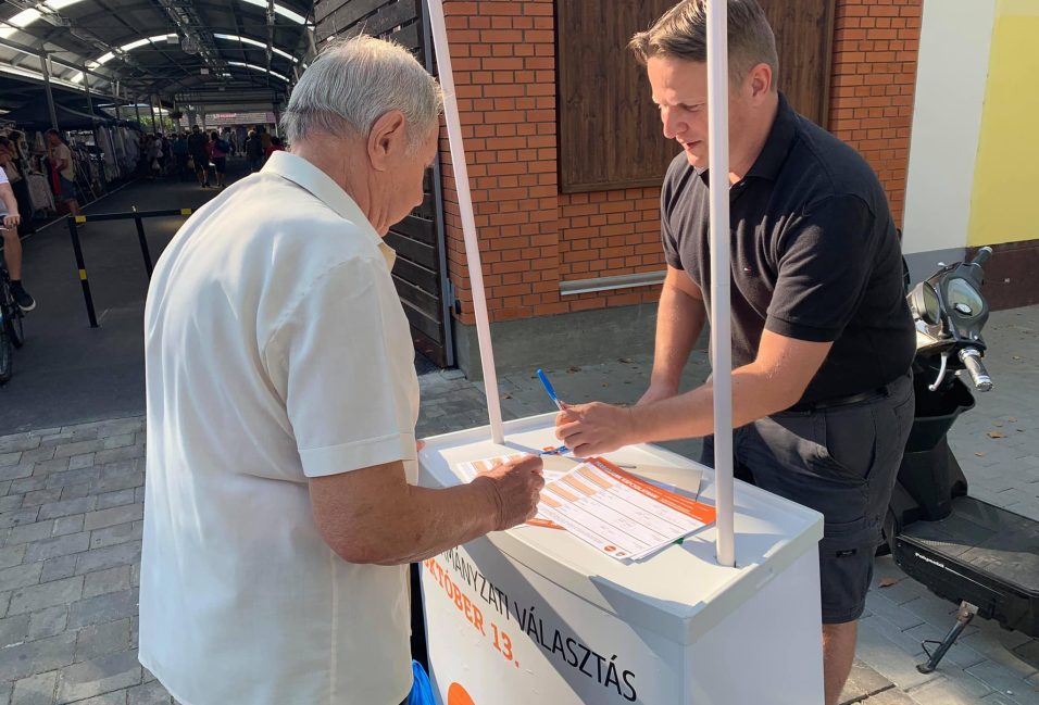 Ismét a piac előtt gyűjtött aláírást a makói Fidesz.