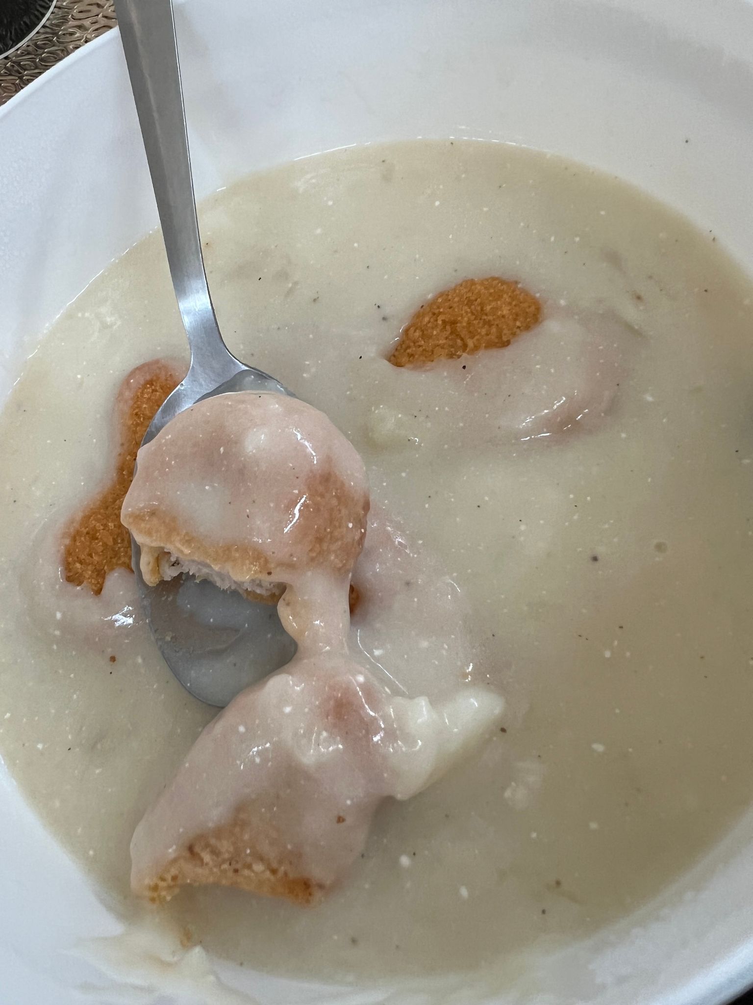 Kedd – grízgaluska leves, burgonyafőzelék, nuggets