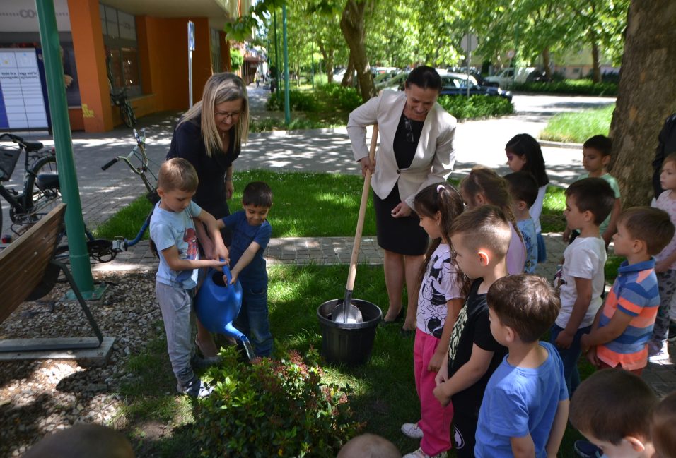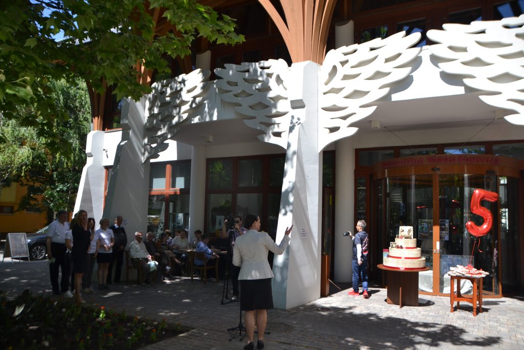 Hétfőn és kedden több programmal is ünneplik a bibliotéka születésnapját. Elsőként a Makói Óvodába, valamint a Pápay Endre Oktatási Intézménybe járó gyerekek flashmobjának köszönhetően egy hatalmas 5-ös szám rajzolódott ki az intézmény főbejárata előtti kis téren. A városvezető köszöntője után pedig két díszbokrot ültettek el a könyvtár bejáratánál.